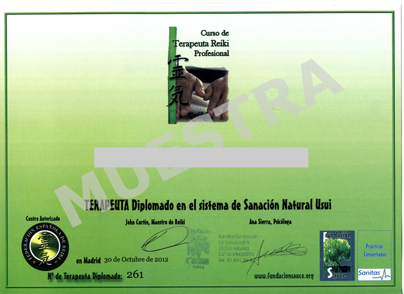 Diplomado de la Federación Española de Reiki.*