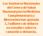 Mente/Cuerpo en Chestnut Hill, Massachuset, el Centro Médico de la Universidad Duke en Carolina del Norte y el Centro Médico California Pacific en San Francisco se han introducido en este asunto. Y los Institutos Nacionales del Centro de Salud Nacional para la Medicina Complementaria y Alternativa han gastado 2,2 millones de dólares en estudios sobre la sanación a distancia