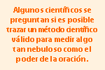 Mientras algunos científicos se oponen a estos estudios sobre materias religiosas o científicas, otros se preguntan si es posible trazar un método científico válido para medir algo tan nebuloso como el poder de la oración.